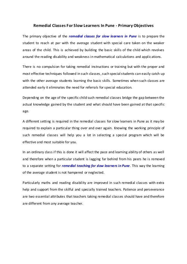 Remedial Classes For Slow Learners In Pune Primary Objectives